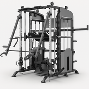 The Nighthawk Forge Elite Functional Trainer & Smith System delivers commercial-grade versatility for premium home gyms. This all-in-one unit integrates a counterbalanced Smith machine, dual adjustable cable columns with selectorized weight stacks, jammer/lever arms, a multi-grip pull-up bar, and integrated landmine. Heavy-duty steel, precision linear bearings, and aluminum pulleys ensure smooth, quiet operation for strength training that feels studio-quality in a compact footprint.