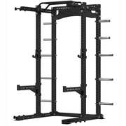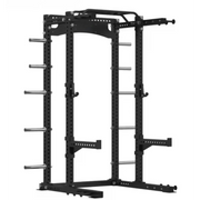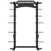 Features: Multi-grip pull-up bar, adjustable J-hooks, safety arms, plate storage